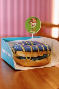 Inspirado no Jotinha, o donut aposta nas cores roxo e amarelo, criando uma apresentação cheia de identidade. Além de delicioso, ele é lindo e perfeito para quem ama registrar momentos especiais.